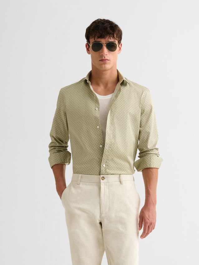 Chemise slim en coton à motif