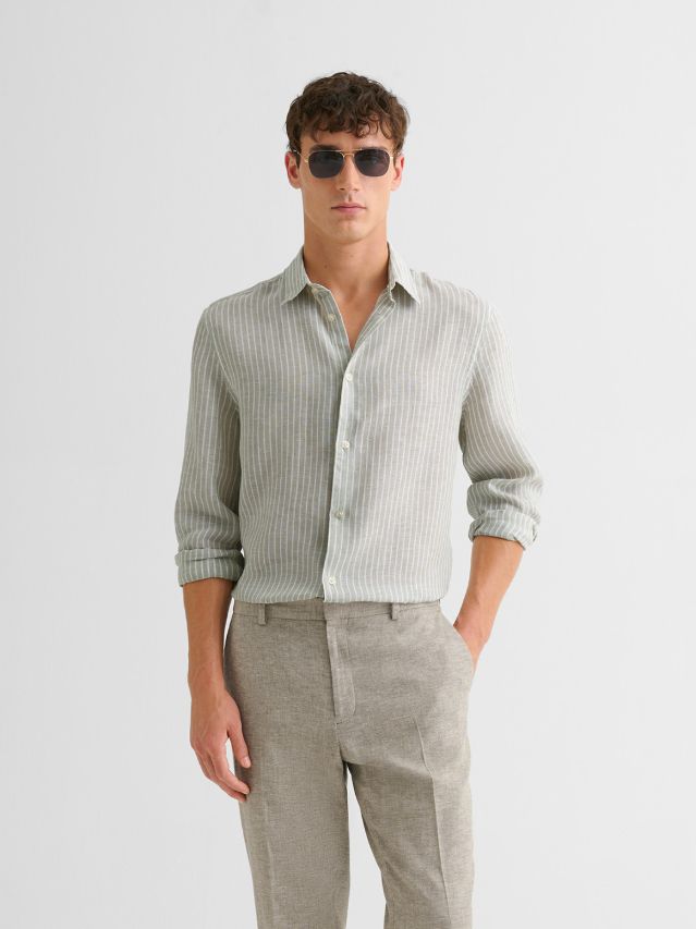Chemise slim en lin rayée