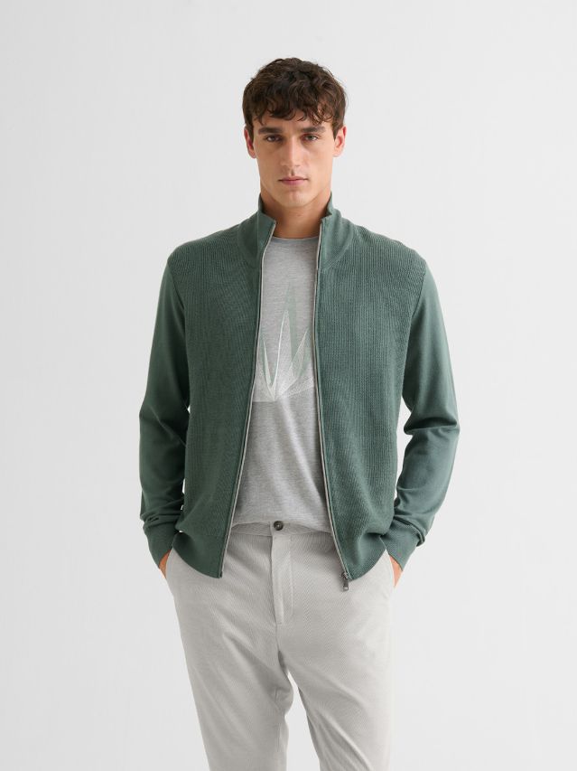 Finition bord-côte en bas de manche et de corps.