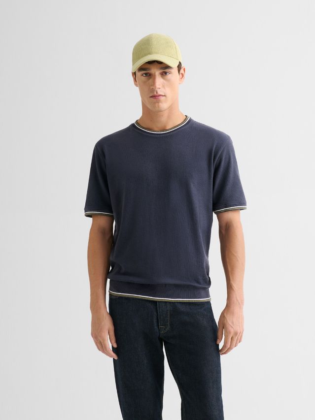 T-shirt col tunisien en coton