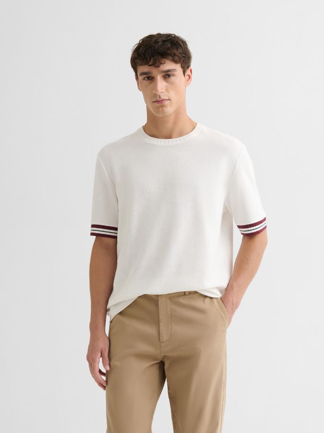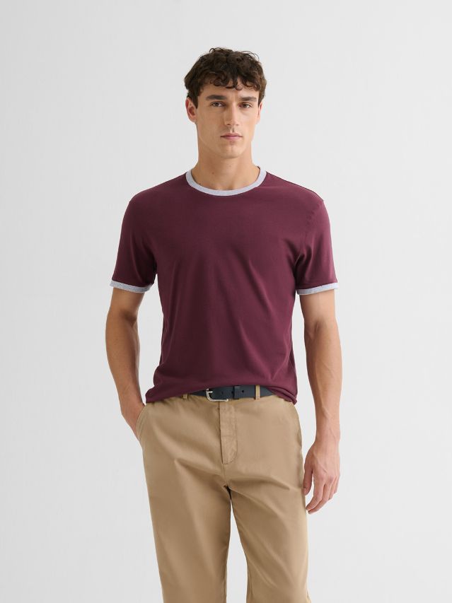 T-shirtcol rond contrasté en coton
