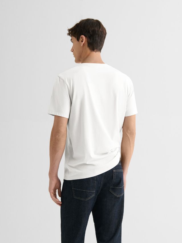 Tee shirt en coton Supima®. Le coton Supima® est un coton de qualité supérieure cultivé aux États-Unis . Il représente moins de 1 % du coton cultivé dans le monde. Considéré comme le « cachemire du coton » le coton Supima® possède une fibre extra-longue qui lui confère ses propriétés premium : finesse et résistance, douceur et rétention de la couleur. La consommation deau nécessaire pour sa culture est réduite très fortement par rapport au coton conventionnel.